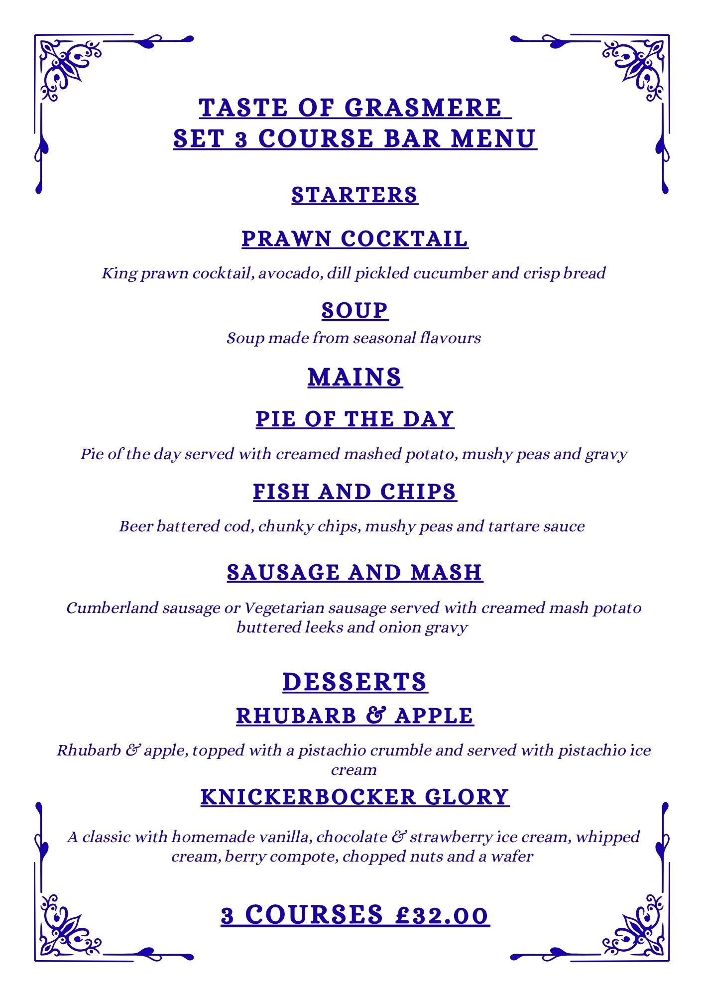 Taste of Grasmere – A’ La Carte and set Bar menus available open Tuesday to Saturday 6 – 8.30pm