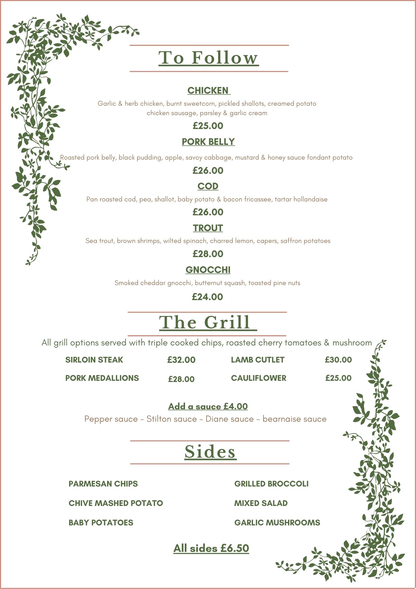 The menu is of A la carte style, packed with lots of fresh flavours and plenty of choice to suit a variety of palates.