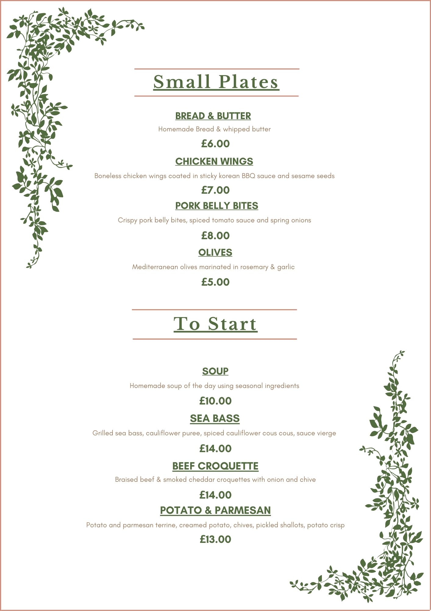 Monday – Bar Menu – 5.30-8pm (No booking required)